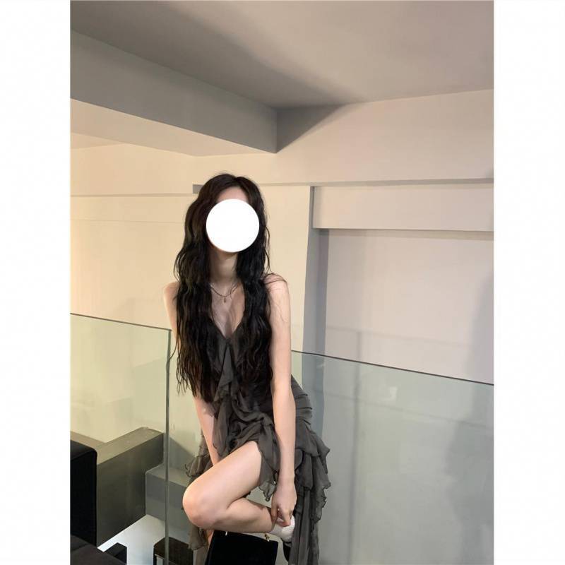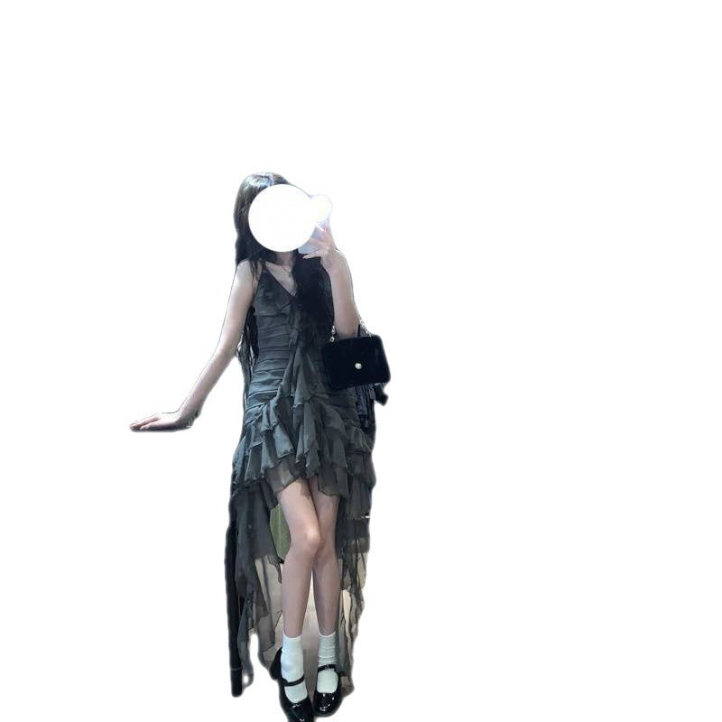 Romantic Dark Flowy Ruffle Layered High Dress