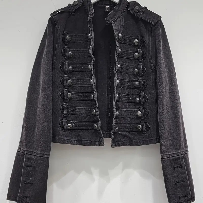 Classic Metal Rib Buckle Design Shoulder Strap Washed Denim Top Skirt