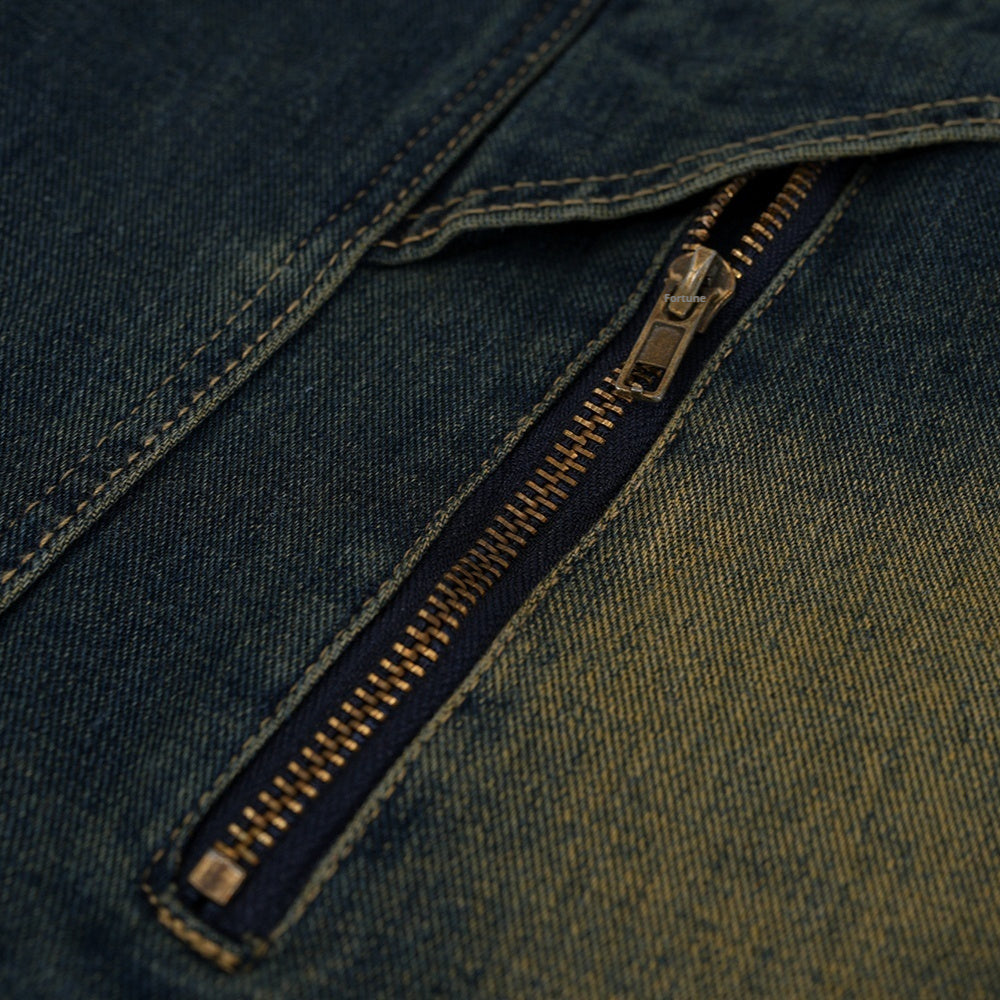Hong Kong Style Retro Stand Up Collar Denim Short Jacket For Women