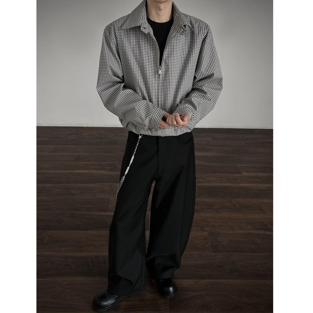 Korean Style Simple Retro Plaid Short Jacket With Double Zipper