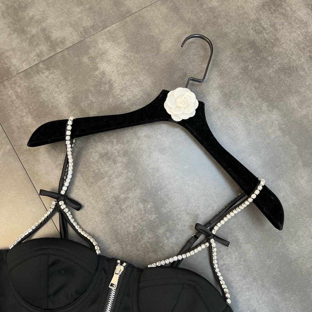 Ladies Shoulder Strap Bow Zipper Dark Tank Top