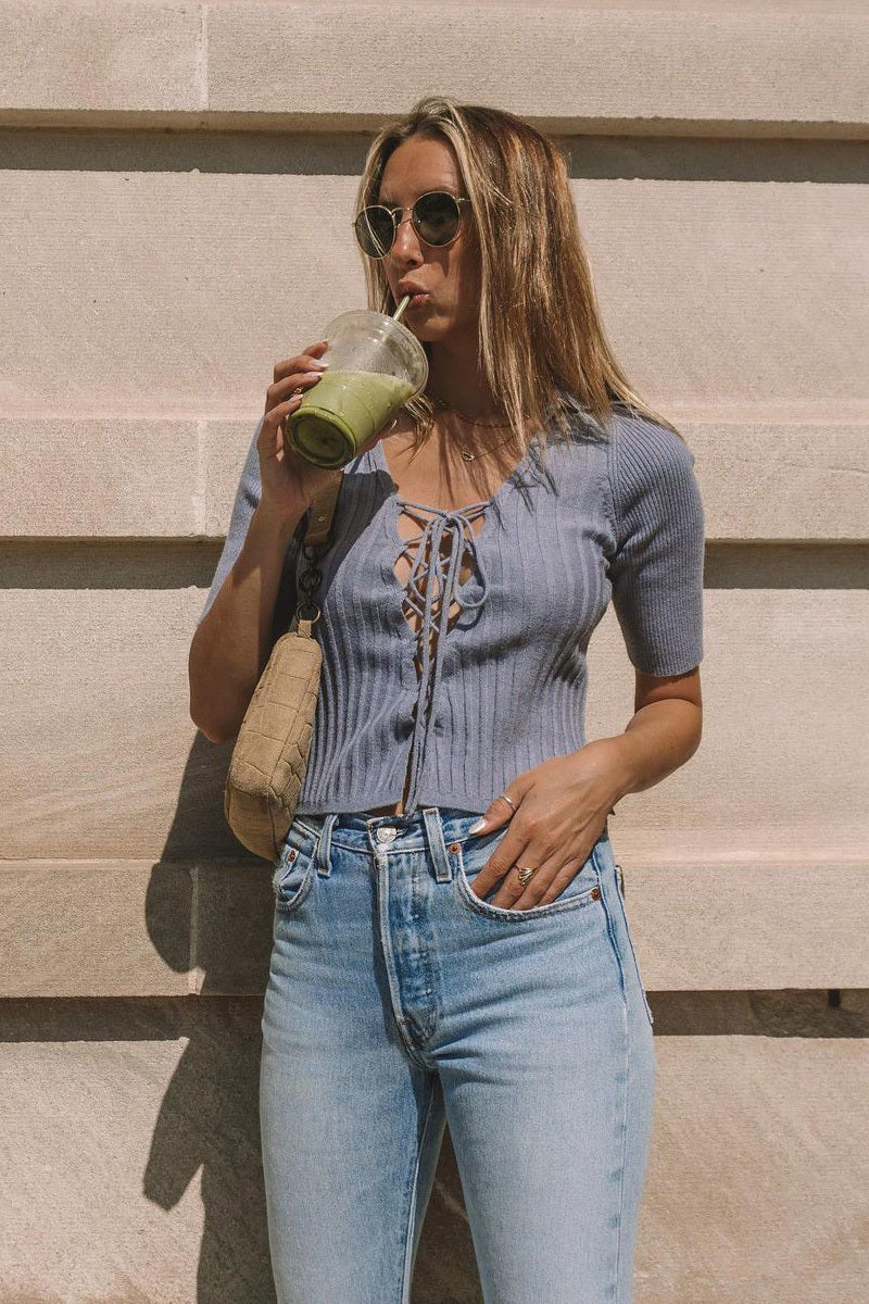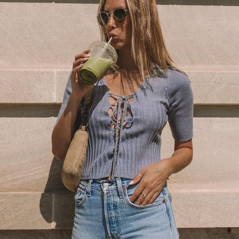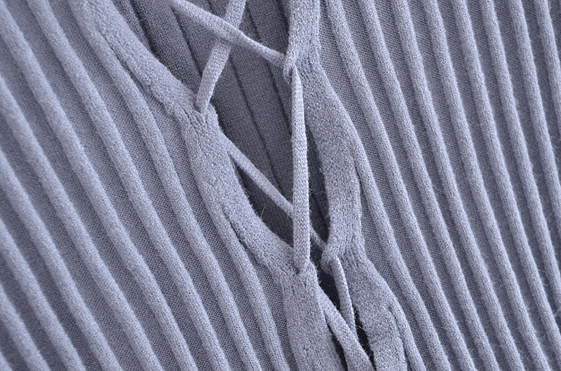 Lapel Slim Cross Drawstring Strap Pure Color All-match Half Sleeve Knit Top Dark Purple Cardigan