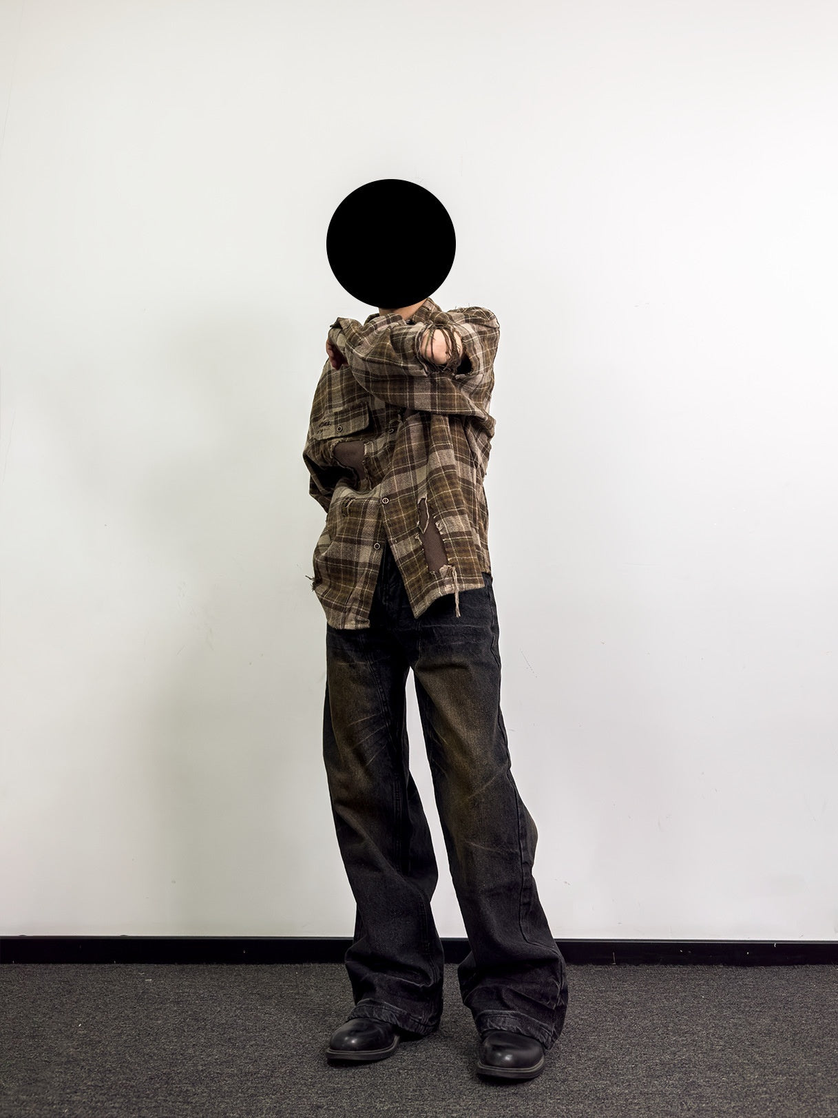 Washed Straight Dirty Mud Textured Deconstructed Jeans